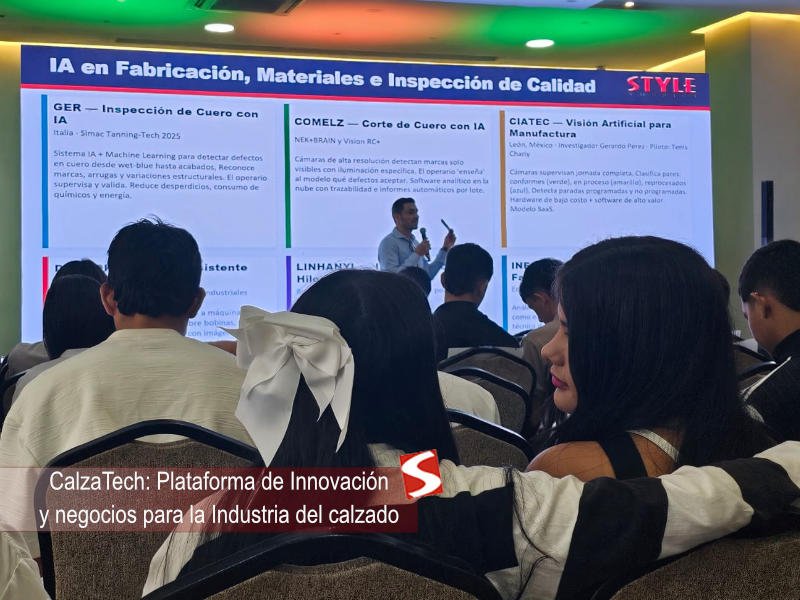 Este evento que se realiza dos veces por año presenta marcas y empresas de diferentes segmentos de calzado femenino, infantil y masculino entre las que destacan propuestas de zapatos deportivos, sandalias y botas del segmento medio y masivo con una buena propuesta de diseño y calidad. Una de las estrategias que vienen con el nombre Calzatech ha sido el espacio de conocimiento con una programación especial de charlas y conferencias en el primer día del evento que esta vez tuvieron como protagonista a la tecnología y la inteligencia artificial. En este marco Style América participó del evento presentando la charla de apertura de la feria acerca de la investigación internacional de Inteligencia Artificial aplicada a la industria del calzado y la moda. La jornada incluyó expertos presentando temas de diseño, producción y comercialización claves para mejorar la productividad y sostenibilidad del sector.